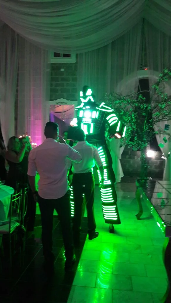 Chegou uma atração que impressiona, deslumbra e impacta seus convidados. O RoboledPix é Gigante, possui 2,70 m de altura e é equipado com leds coloridos, canhão de laser verde e bazooka de jato criogênico CO² (fumaça branca e refrescante). Tudo isso para deixar sua festa única e inesquecível.
